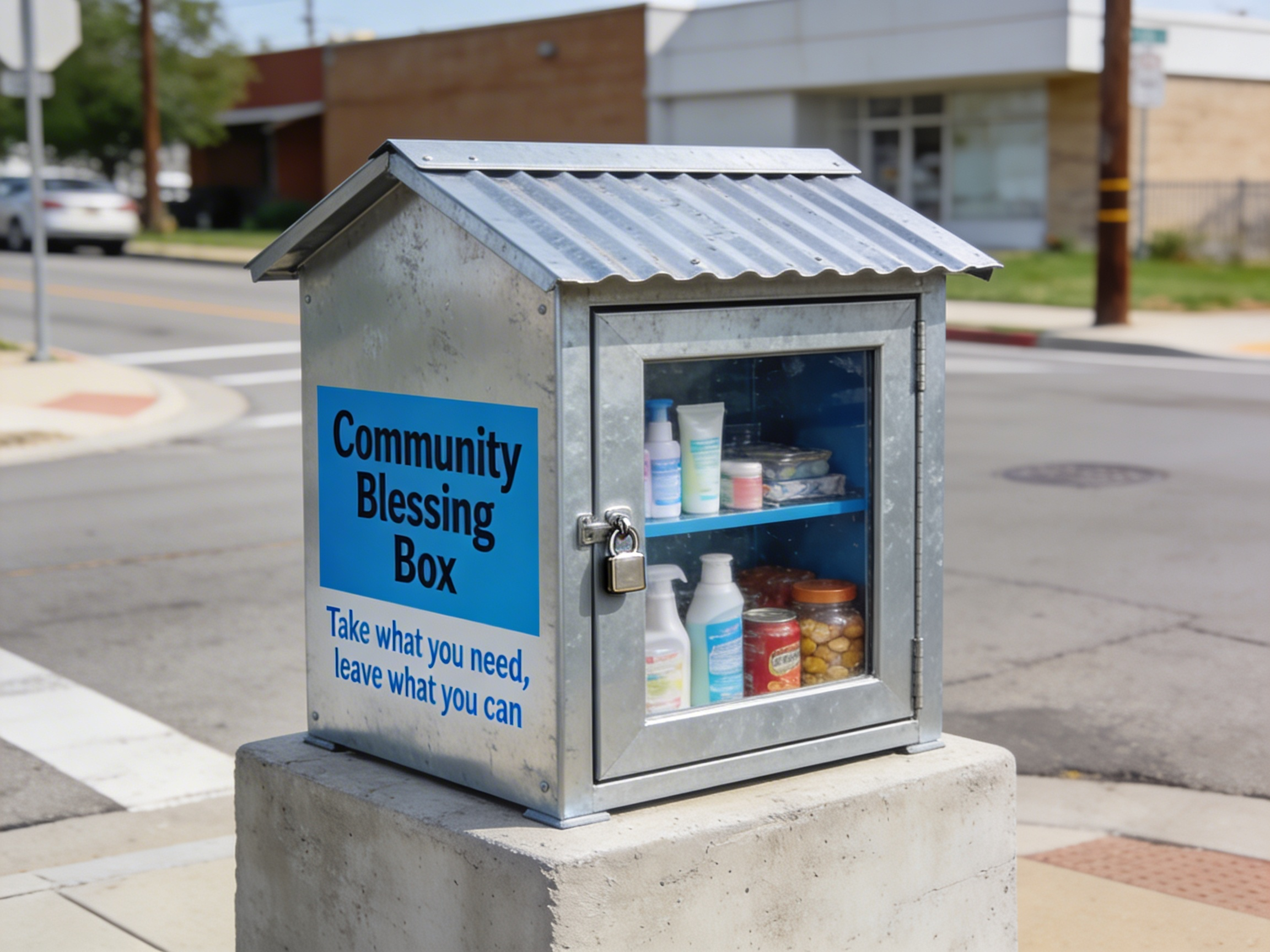 Help us provide a lasting source of support in our community by sponsoring a durable, weather-resistant blessing box. These boxes are used to store and share food, hygiene products, school supplies, and other essentials freely with anyone in need. Placed in accessible community locations, a blessing box offers dignity, hope, and practical help — allowing neighbors to give what they can and take what they need.